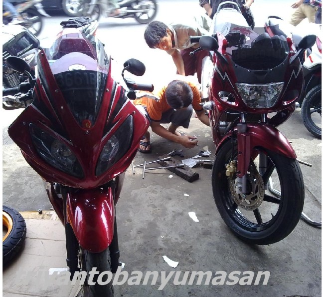 Saat ganti ban di bengkel Daan Mogot deket Indosiar ternyata sedang ada pemasangan Body kit V-Ixion Full fairing..