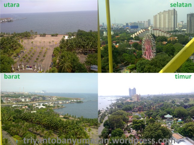 Gambar di atas adalah view yang dapat di lihat sesaat sebelum kita meluncur turun dengan kecepatan di atas 60 kpj, (arah utara merupaka view pantai Karnaval dan laut utara, arah selatan tampak Bianglala, hotel Raddin, WTC Manggadua, arah barat tampak hamparan industri Asaimas dan arah timur tampak Halilintar, Ancol Mesion sampai PLTU arah Priuk) ……kalo di aspal meluncur kecepatan segitu mah enteng, tapi yang ini…wuihhhh…. Adrenalin benar-benar terasa sekali…