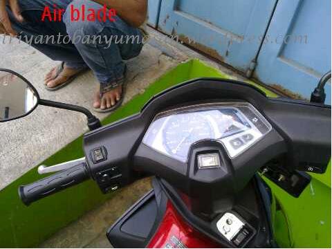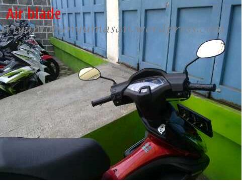 Airblade ini adalah milik kepala cabang AHASS Cirebon tersebut, jelas terlihat dudukan pelat nomor depan tidak ada dan kelihatan sekali yang ada bikinan sendiri dengan baut panjang. Pelat nomor masih sementara, sepertinya belum lama beli.. dashboard bentuknya oks, sayang masih analog dan spion model lawas yang sudah lama ditinggalkan oleh AHM…