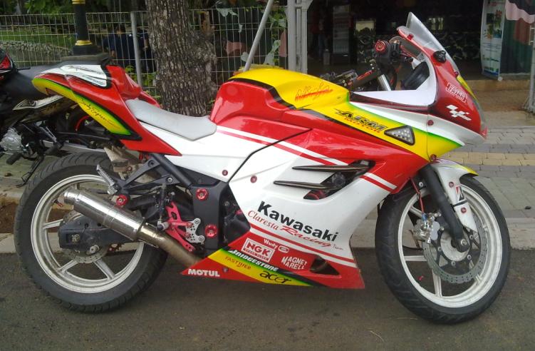 Seperti tampilan Kawasaki Ninja 250 yang seluruh body/fairingnya diganti dengan produk lokal alias bikinan fiber sesuai pesanan, nampak lebih sporty dengan tambahan kisi-kisi yang racy, juga body belakang yang melebar dan nungging. Tob-markotob tapi kebiasaan buruk pada beberapa owner N250 modifikasian, yaitu mengabaikan spakbor belakang, pasti nyiprat bisa sampai boncenger.