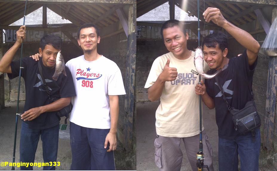 Segera kami keluar dan kembali ke kolam untuk menengok joranku, tali kail sedikit bergeming, beberapa saat ada tarikan meronta dan “straik, seekor Gurameh kecil ukuran 1/2 kilo keangkat dengan bibir dower kecancang mata kail, kalo tidak sobek pasti kurelease lagi, kasihan masih kecil… Oks kata Kang Elsa suruh angkut aja, ya udah bungkus..