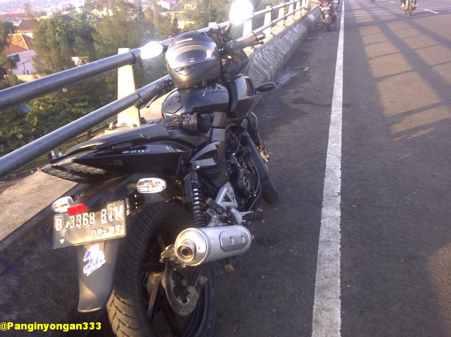 Lewat 10 menit Kang Sapto belum nongol, “apa aku dah ditinggalin neh” pikirku, kutelpon saja, nada dering tanda hp aktif tapi tidak diangkat, mungkin di jalan.Lewat 30 menit akhirnya muncul tampang aparat di sampingku dengan pulsar 180 UG3 ber rear box. Ternyata keterlambatannya karena panggilan alam xixixi semoga tidak karena sambel