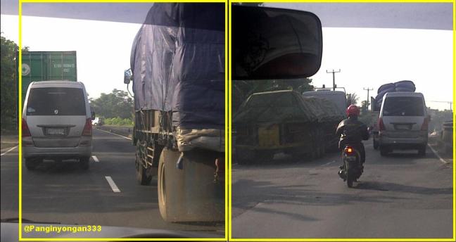 Jalur tol Jakarta lewat tengah malam begitu lengang, mobil sejuta umat yang dikendarai atasanku digeber bak kesetanan melaju mendekati 150kpj versi speedo mobil. Istirahat sejenak di Rest Area Karawang sekedar ngopi, Lanjut meluncur menembus malam, Keluar tol Cikampek jalan tersendat bahkan masuk Subang mendapati jalan matot alias macet total, alhasil sampai adzan subuh berkumandang masih diam tak bergerak, beberapa supir turun dan tiduran di jalanan. Kendaraan pribadi ada yang sengaja minggir dan masuk area masjid beristirahat hingga kemacetan terurai.