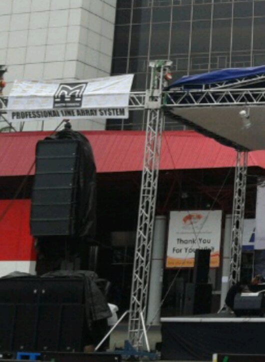 Penyajian konser musik DJ juga tidak akan menarik tanpa power audio yang mumpuni. Penikmat musik “jedug-jedug” takan bergoyang jika sekedar menggunakan speaker horn yang sering dipasang di menara masjid. Konser jaman sekarang sudah mengaplikasi speaker dengan teknologi modern. Digital mixer sekelas Midas merupakan piranti wajib sebagai penunjang hasil audio yang maksimal. Gabungan speaker FOH mulai dari EAW, Dynacord, D&B, Mayer dan berbagai merk kelas kakap dihidangkan, memanjakan telinga penikmat audio dengan power luar biasa. Pemasangan speaker digantung sejajar (akrab disebutline array padahal lebih sering J array, karena bentuknya lengkung) dengan tambahan sublow speaker di deretan paling rendah (lantai atau bawah panggung), membuat hasil suara makin sempurna untuk memancing emosi audiens. Apakah pembaca suka mendengarkan audio dengan power besar? (tri)