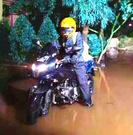 Hal tersebut juga saya alami, berulang kali si Jalitheng Pulsar 220 dipaksa menerjang banjir, bahkan beberapa hari yang lalu cukup dalam genangan yang diterjang. Bukan jumowo, tapi tidak ada jalan lain, sudah mencari jalur alternatif, semua mampet oleh kendaraan.