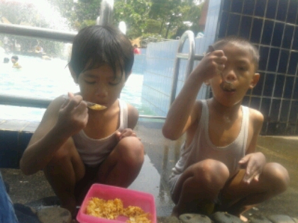 Bekal nasi goreng 1 rantang tupperware ludes berdua. Ga perlu jajan, kenyang dan menyehatkan. Padahal saya menyangka pasti saya yang bakal makan bekel tersebut, anak-anak paling minta jajan. Dugaan meleset. Ayah kebagian satu sendok sisa 🙂 .Kapan terakhir pembaca berenang?(tri)