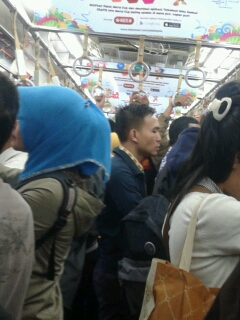 Harapan kami, meski berdiri, paling tidak semua penumpang kebagian pegangan untuk menjaga keseimbangan badan. Karena sekarang ini, di jam sibuk, jumlah penumpang berdiri lebih banyak dari jumlah pegangan yang disediakan. Apakah pembaca pernah naik kereta berdiri tanpa pegangan?(tri)