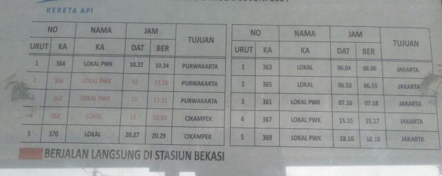 Sedang jadwal kereta api ekonomi lokal yang akan membawa kami, keberangkatan dari stasiun Bekasi jam 20.29.