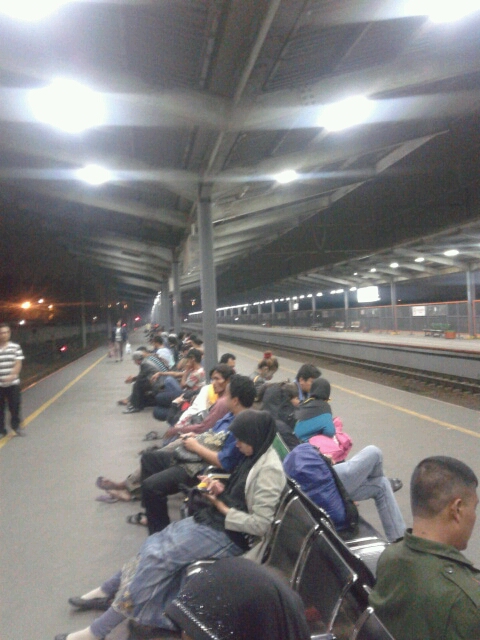 Memasuki stasiun, calon penumpang cukup ramai, mungkin karena week end dan juga libur jelang lebaran Idul Adha, banyak yang mudik seperti saya.
