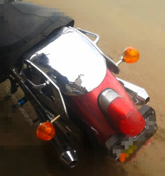 Dua knalpot di samping kanan dan kiri menjadikannya makin moge look. Apakah ini sekedar hiasan, atau paralel output saja.
