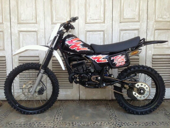 Suzuki Ts 125 termasuk sepeda motor 2 tak dari Suzuki yang gagal saya miliki alias cuma naksir, pernah nggeber mesin 125cc 2 tak dari Suzuki adalah GP125 dengan knalpit udang mirip milik TS125 itu. Aziibb kemrincingnya.
