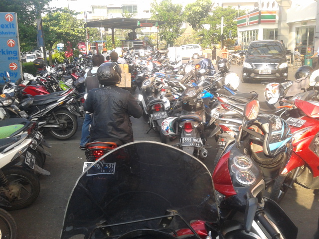 Waktunya pulang, nah saat pulang ini saya musti berdesakan di jalur parkir sepeda motor yang cukup sempit, sebenarnya saya diarahkan ke jalur lain tapi malah bingung sendiri. Saya malas masuk jalur jalan Gajahmada karena harus memeutar jauh untuk kembali pulang.(tri)