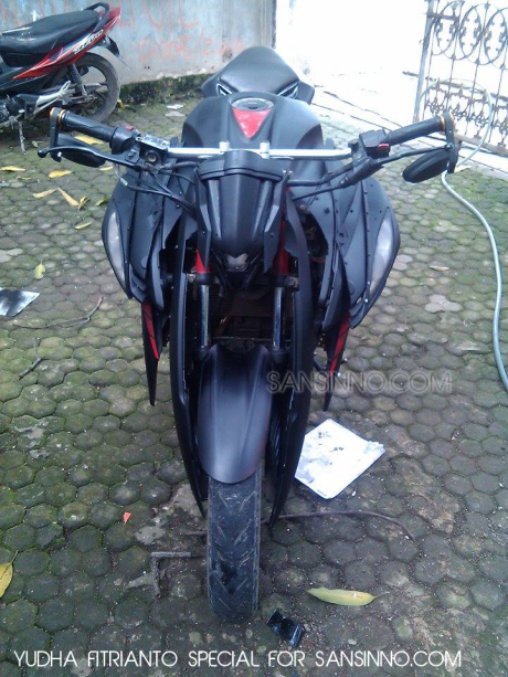 kalo ini yamaha New V-ixion, bayangkan kalo Mio atau Beat yang mengenakan body dan setang seperti ini, kreatif . (pict : sansinno.com)