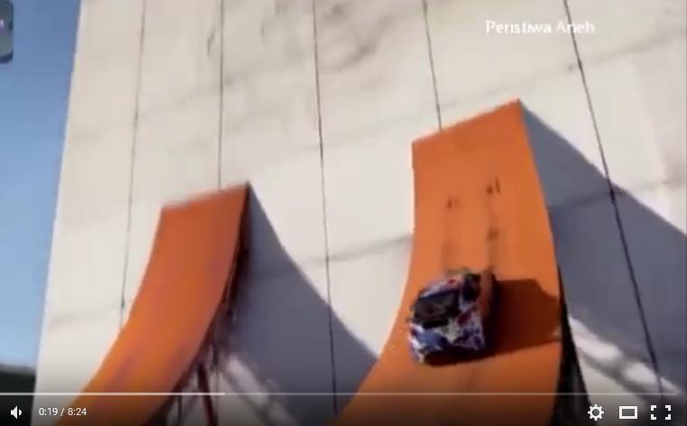 Gambar di atas saya captur dari video youtub dalam Kompilasi Olahraga Paling Ekstrim Di Dunia. Yang memukau saya adalah video mobil drifting di dinding, layaknya climbing