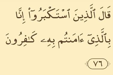 Tempat yang tertinggi (Al-‘A`rāf):76 – Orang-orang yang menyombongkan diri berkata: “Sesungguhnya kami adalah orang yang tidak percaya kepada apa yang kamu imani itu”.