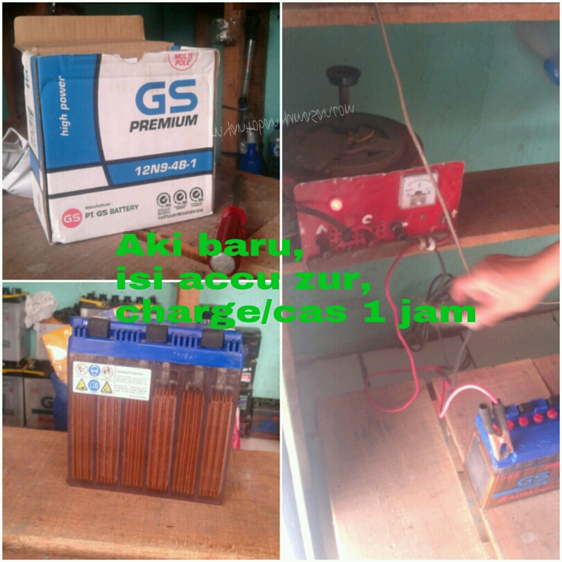 4. Charge atau cas aki, jika air accu zuur berkurang tambahkan lagi