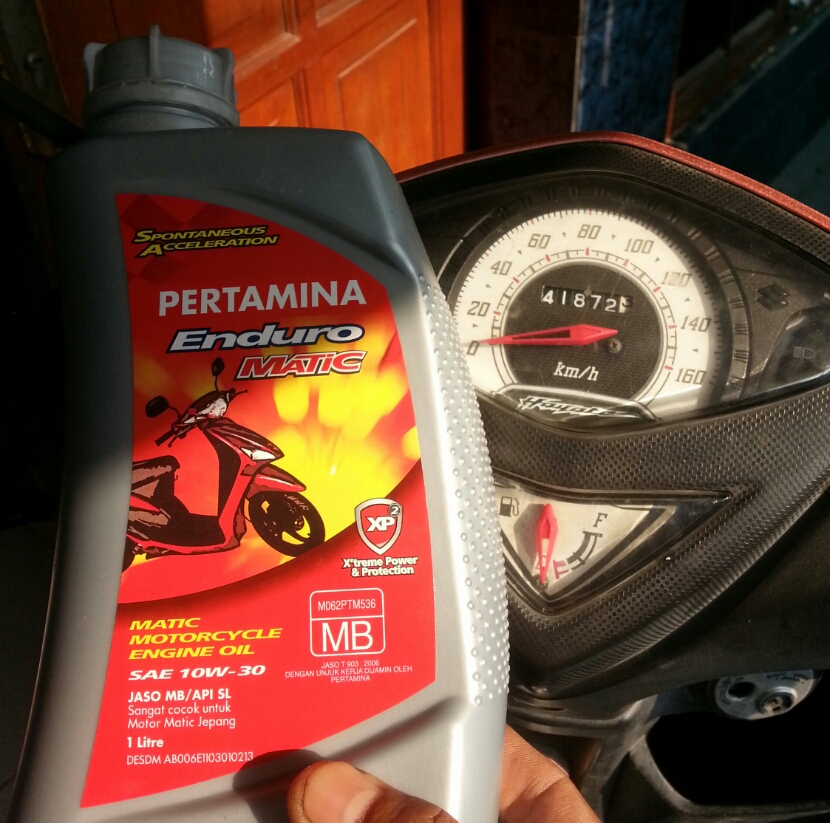 Saat saya tap oli lama pagi kemaren, nampak oli masih cukup bagus, baik warna maupun takarannya. Masih kehijauan, karena oli Pertamina Enduro Matic memang hijau saat masih baru. Entah olinya yang bagus, atau Suzuku Hayate memang bandel, seperti halnya Suzuki Skydrive yang hanya ganti oli setahun sekali. Tetap oke sampai sekarang. Padahal Hayate dipakai riding harian menembus kemacetan Jakarta – Bekasi. Kerap diajak kerja keras ngangkut beras 😀 . Jadi pengin nyoba Pertamina Enduro Racing di Pulsar 220, si Jalitheng. Selama ini Pulsarstrada mengonsumsi oli mesin Shell AX7. Perpindahan gigi keras saat mesin panas. Nanti deh, soalnya seiarang masih ada stok AX7.(tri)