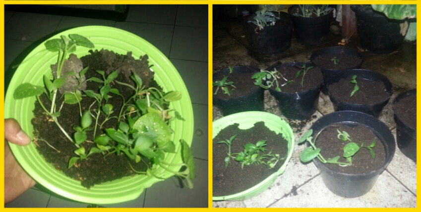 5. Masukan media tanam ke dalam pot. Siram dan diamkan 1 malam. Karena tanah media tanam dari dalam karung bersuhu agak panas. Jadi perlu didinginkan