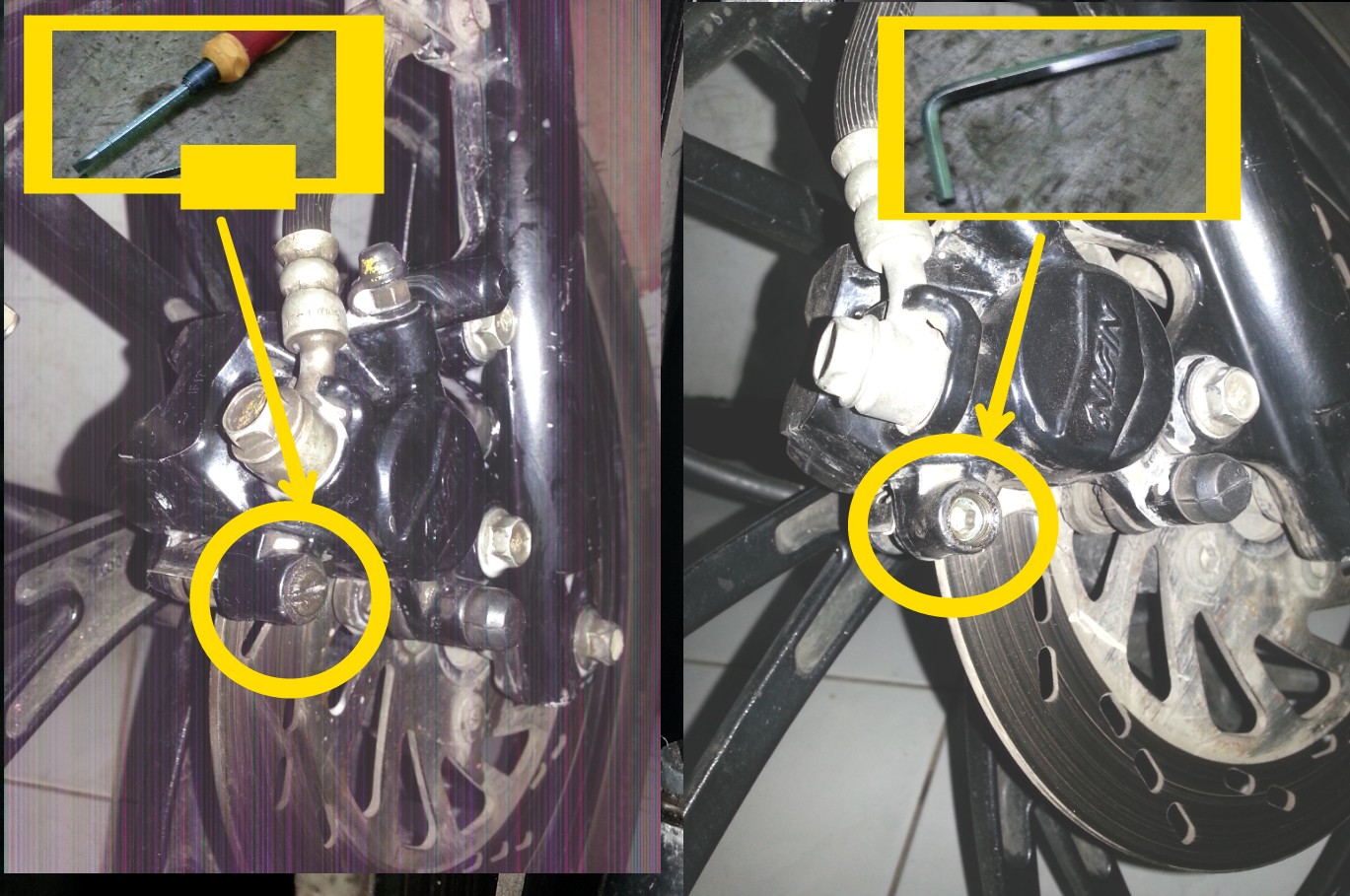 3. Dorong kaliper atau kepala babi ke arah dalam dan luar velg untuk mengecek bahwa disk pad sudah longgar atau renggang