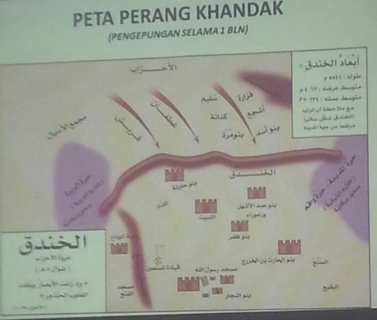 Peperangan Khandaq dimenangkan kaum muslimin karena pertolongan Allah SWT yang mengirim angin topan dan malaikat. Jadi jangan sesekali mencela Allah dan cuaca. (Tri)