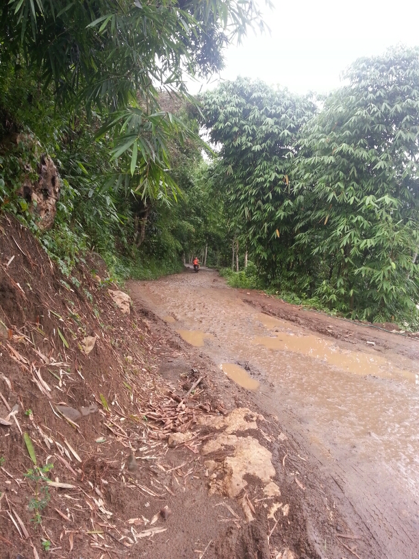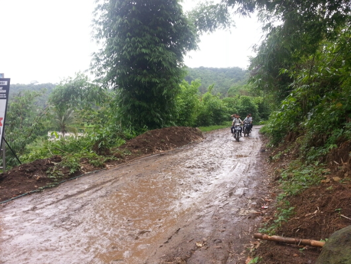 Mengayuh menuruni jalan berbatu, diiringi gerimis yang tak kunjung berhenti.