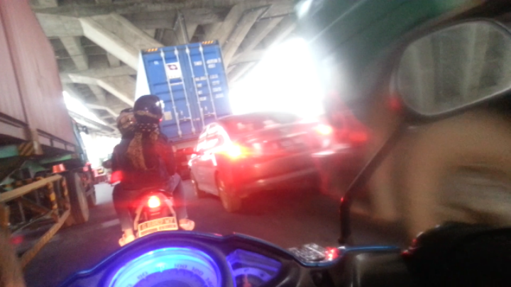 Kemarin lusa, Rabu 24 Februari 2016 saya pulang kerja lewat jalan Martadinata arah Ancol – Tanjung Priuk. Selepas jembatan PLTU Ancol Timur nampak lalin padat, banyak pemotor berhenti dan sebuah truk kontainer yang mengangkut petik kemas juga berhenti. Pengendara yang searah saya bertanya pada pak Ogah alias pengatur lalu lintas freelance 😀