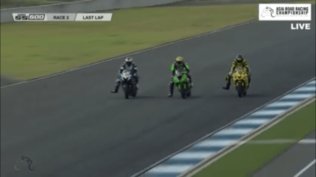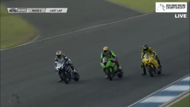 - Podium 3 diraih pebalap asal Thailand, Decha Kraisart dengan Yamaha R6. Pada race 1, Decha finish urutan 16. Lompatan yang luar biasa.