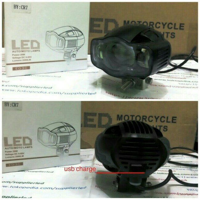 Hingga akhirnya saya menebus lampu LED yang secara fisik, nampak 3 mata. Lampu ini saya beli di Bukalapak. Lampu LED model Lampu Sorot LED RTD E03C dari CR7. Kebetulan kawan yang lain juga sudah mengaplikasi di Yamaha Mio. Dan cukup terang dengan 1 mode sakelar saja. Sorot terang, ‘padang jingglang’.