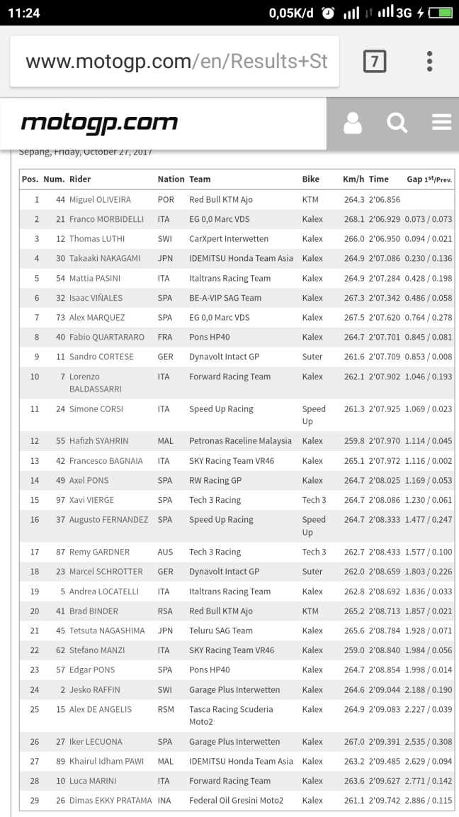Hasil latihan bebas sesi pertama atau free pratice 1 di Sepang, pagi ini, Dimas Ekky meraih posisi 29 alias juru kunci, sedang Syahrin ada di urutan 12 dan Khairul Idam Pawi urutan 27, sedang pebalap Jepang, rekan 1 tim Idam Pawi, Takaaki Nakagami berada di urutan 4.- Moto2 grand Prix adalah ajang pebalap berbakat bisa dibilang berbeda atmosfer dengan balapan lokal semacam ARRC dan Moto2 Eropa. Bahkan Rafid Topan yang pernah turun di ajang grandprix, tidak mampu memberikan hasil terbaik saat turun sebagai Wilcard di ARRC Sentul. (Rafid Topan bukan lawan Gerry Salim)