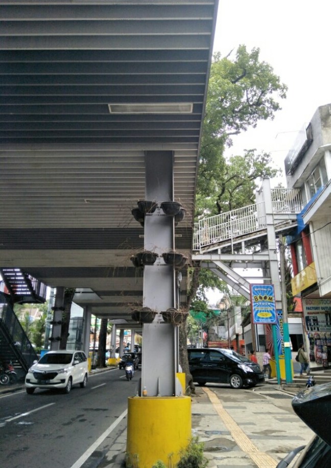 Tanaman (standing garden) yang menempel di tiang skywalk