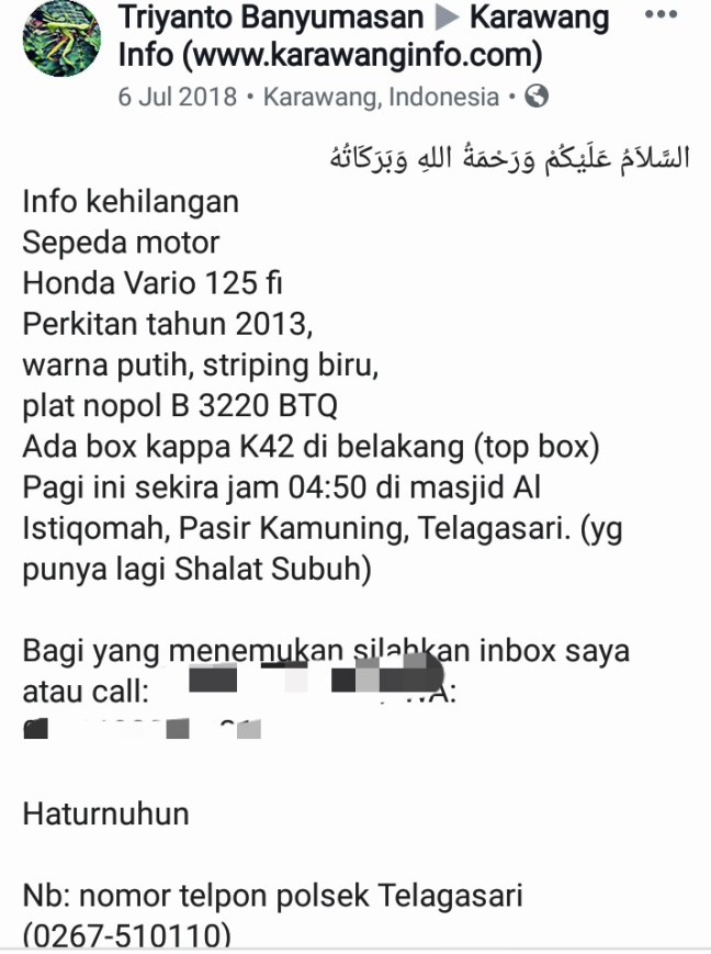 Mengapa saya tidak menyangka? Karena saya yaqin double lock, alias saya kunci setang dan menutup keylock lobang konci kontak si Vario. Waktu juga sangat pendek, karena saya datang akhir dan bergegas keluar saat jamaah yang lain masih wirid.