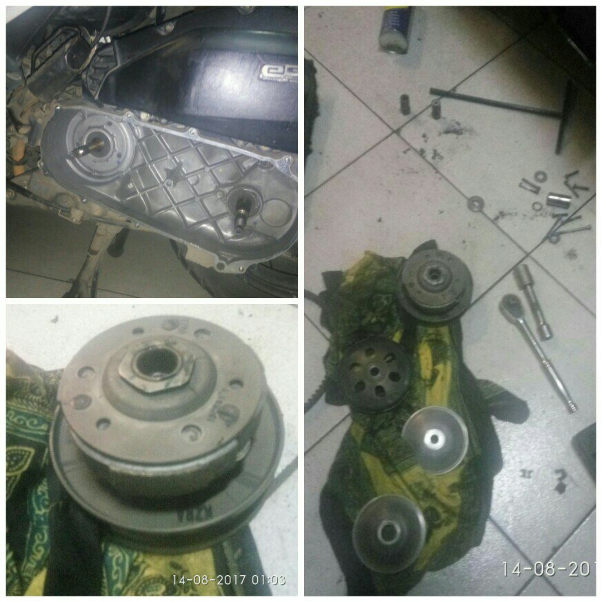 Sempat gagal pasang lagi, karena stok grease cvt tidak cukup, baru pada tanggal 20 September 2017 barulah dieksekusi, saya memakai grease Setelah Suzuki yang model syachet, 5ribuan. Setelah rumah CVT dibongkar, ternyata roler 12 gram yang akan menggantikan roler lama, (kombinasi 10 dan 8 gram) berbeda ukuran. Roler 12 gram yang tertua untuk Vario ini, dimensinya lebih kecil dibanding roller lama. Meski secara berat lebih tali dimensi lebih kecil. Sepertinya Vario yang tertera di bungkus roller, bukan Vario 125, mungkin Vario 110. Proses penggantian tidak difoto, cara bongkar dan pasang bisa klik link di paragraf awal artikel ini.
