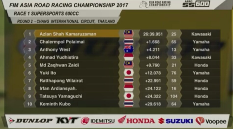 Hasil (final Result) lengkap Suzuki Asian Chalenge Buriram Thailand di Chang International Circuit, Jari ini, berubah total dibanding race1 kemarin. Pebalap yang semuanya mengendarai Suzuki GSX-R 150 ini, bersaing ketat.