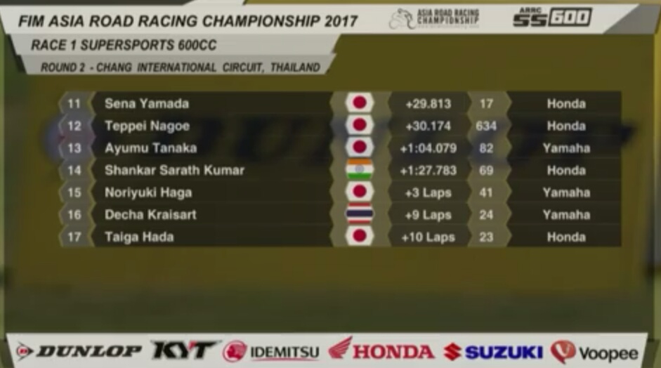 Pebalap Indonesia lainnya, pada gelaran balap Suzuki GSX-R 150 Asia, Chepy Armansyah mendapatkan hasil jauh lebih dibanding Race pertama, kali ini, Chepy finish di urutan 4, setelah kemarin hanya meraih finish urutan 11