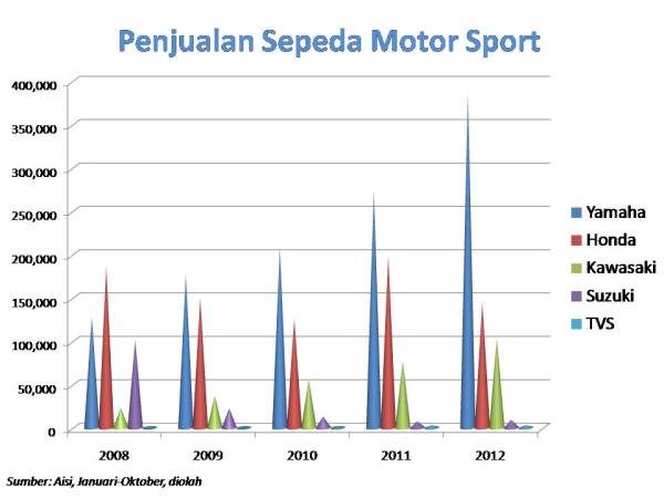 Menarik membaca postingan Eyang Edo tentang Motor Sport Kebal Krisis (klik saja) yang membahas kenaikan jumlah penjualan sepeda motor di segment sport, padahal tipe bebek dan matik mengalami penurunan. Disebutkan dalam tulisan tersebut bahwa pada bulan Oktober 2012 kemarin segment sport (anggota AISI) terjual 646 ribuan unit, padahal pada Oktober 2011 hanya sekitar 599 ribuan unit. Okay saya tidak akan membahas ulang apa yang sudah dibahas oleh Eyang Edo, penyebab kenaikan jumlah motor sport, dan penurunan jumlah tipe lainnya. Yang menarik adalah semakin sulitnya produk Astra Honda Motor (AHM) mengalahkan produk pesaing terdekatnya yaitu Yamaha Indonesia Motorcycle Manufacturing (YIMM).. berikut kutipannya Lanjutkan membaca Sport AHM Kalah Penjualan, Jelek atau Over Price ?